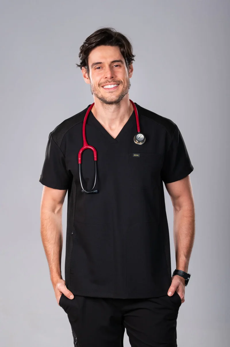 this tailored-fit scrub Set is designed for comfort, performance, and a sharp, professional look. Each piece is thoughtfully designed with the latest performance features and style details Experience unrivaled flexibility! Our Royal Scrubs PREMIUM adds a new layer of flexibility and luxury to your medical uniform wardrobe.